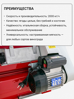 • Регулировка по мягкости дробления, что позволяет учитывать нюансы. получения мезги из винограда разных сортов и размеров.